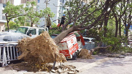 Власти Китая объявили редкое штормовое предупреждение — на север страны обрушились ураганные ветры скоростью до 150 км/ч, способные выкорчевывать деревья и представляющие реальную опасность для людей. Метеорологи предупредили, что жителей весом менее 50 кг может «заметать» порывами, и призвали их оставаться дома.
